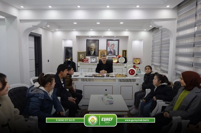 Güroymak Salih Özmen Özel Eğitim ve Uygulama Okulu’nun değerli öğrencileri, öğretmenleri ve okul idaresi, Belediye Başkanımız Eşref Mutlu’yu makamında ziyaret etti.