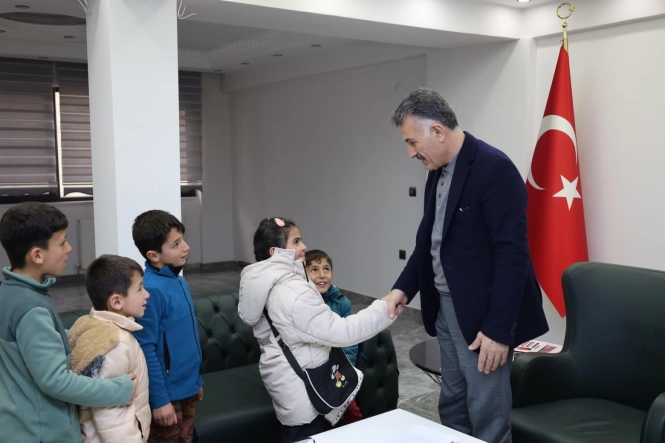 Gedikpınar Köyü Kekliktepe Mezrası İlkokulu’nun gülen yüzleri belediyemizdeydi! Öğretmen ve öğrencilerini makamında ağırlayan Belediye Başkanımız Eşref Mutlu, minik misafirlerimizin taleplerini tek tek dinledi. Samimi bir sohbet eşliğinde geçen ziyarette çocuklarımız hayallerini paylaşırken, Başkanımız da nazik ziyaretleri için teşekkür ederek onlara çeşitli hediyeler takdim etti. Çocuklarımızın gözlerindeki ışıltı, günün en güzel hatırası oldu.