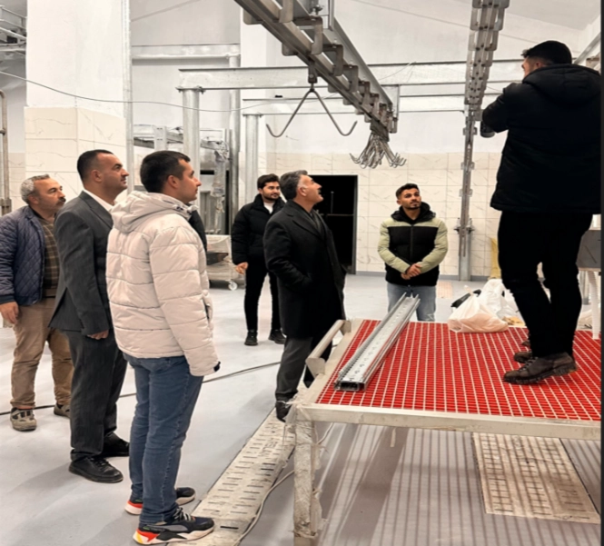 Kesim hattı sistemlerinden hijyen alanlarına, üretim süreçlerinden teknik donanımlara kadar her ayrıntı yerinde değerlendirildi. Tesisin bölge hayvancılığına katacağı ekonomik ve yapısal güç hakkında detaylı bilgiler alındı.