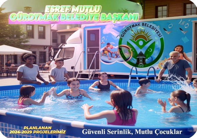 Başkan Eşref MUTLU:" Vizyonumuz Seyyar havuzla attığımız ilk adımla başlıyor; uzun vadede hedefimiz Güroymak’a modern bir Olimpik Yüzme Havuzu kazandırmaktır" dedi.